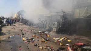 دلع حريق هائل بجوار محطة كلابشة يلتهم عده المحلات المقابلة لنقطة كلابشة وعيادة أطفال بأعلي المحلات.